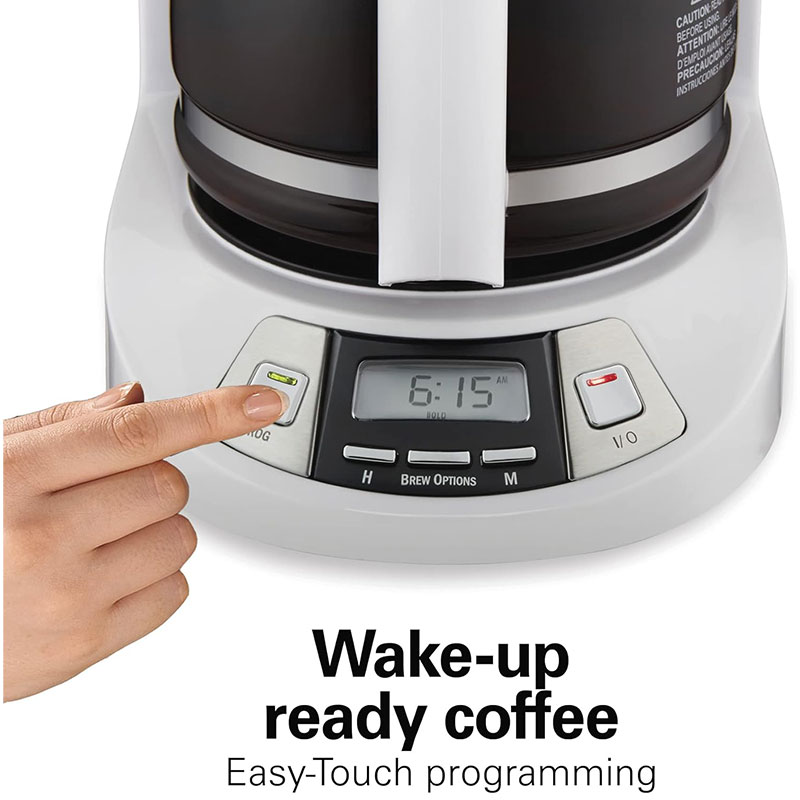 The Hamilton Beach Coffee Maker has a large 12-cup capacity and is programmable, so your coffee is hot and ready in the morning when you wake up. Choose from 3 brewing options: regular, bold or 1-4 cups.