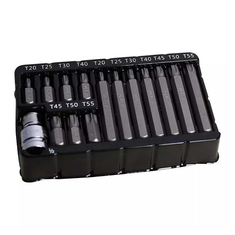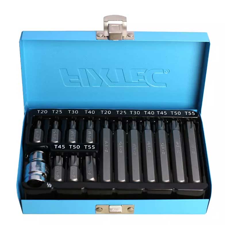 Fixtec Drill bits made from high quality S2 steel material for ultimate durability, suitable for industrial use. Not only can you use the bits on hand tools, but you can also easily insert them to any 1/4-inch hex shank power drill to use. Set includes 7pcs 30mm length: T20 T25 T30 T40 T45 T50 T55, 7pcs 75mm length: T20 T25 T30 T40 T45 T50 T55, 1pc Bit holder.