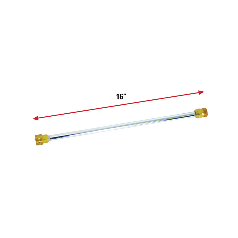The Simpson #80149 16” Spray Wand up to 3600PSI for Gas Pressure Washer is 16 inches long; it features an industry-standard quick-connect nozzle connection and an industry-standard M22 threaded spray gun connection.
