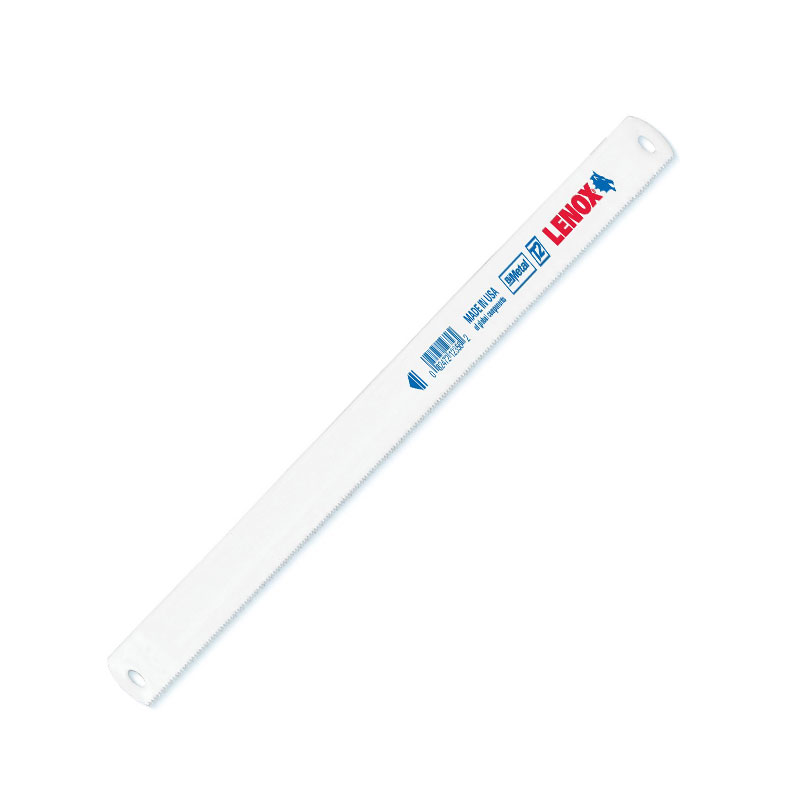 This Hacksaw Blade is Use for cutting on Heavy Metal.The Lenox Hack Saw Blades are bi-metal and have a spring steel body and a high speed steel cutting edge. This construction allows the blades to bend and flex without shattering and the high speed steel gives you a superior cutting edge for long life. The Lenox blades feature the Lenox Tough Tooth Design which helps eliminate tooth strip page. These blades work with Lenox Hack Saw frames as well as most other Hack Saw Frames in the Market. This Blade Length is 12 Inches, 24 Teeth per Inch and a Width of 1/2 Inches.