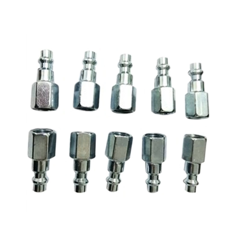 The Master Mechanic #239180 5 Piece ¼” Female Plug Set is made of steel with zinc plating, and pre-applied Teflon thread sealant.