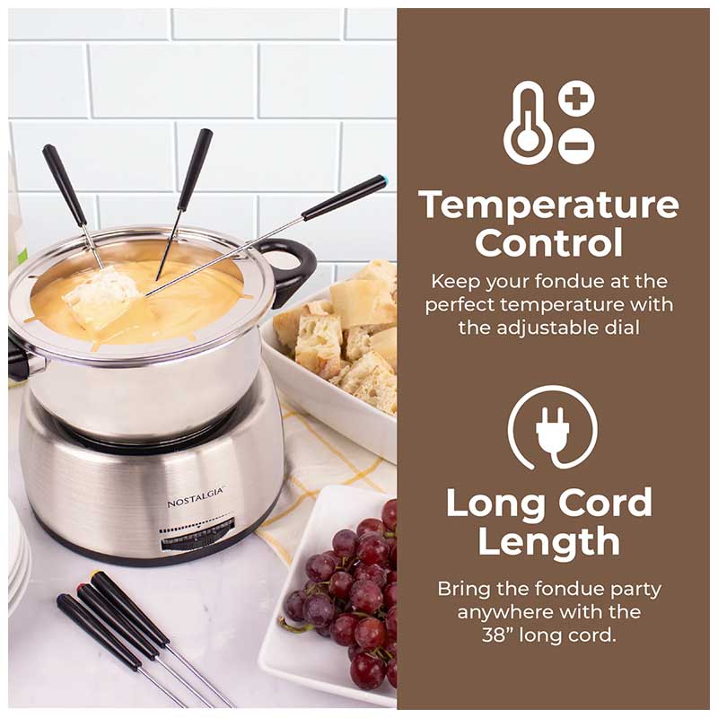 Nostalgia #FPS200 6-Cup Stainless Steel Electric Chocolate & Cheese Fondue Pot