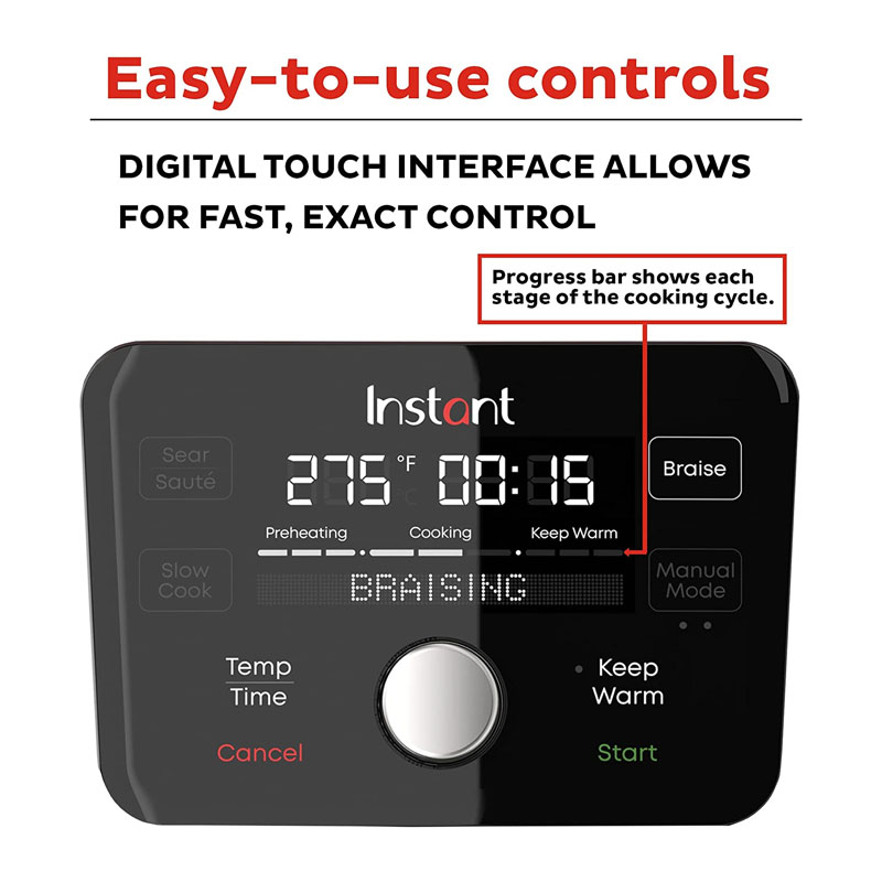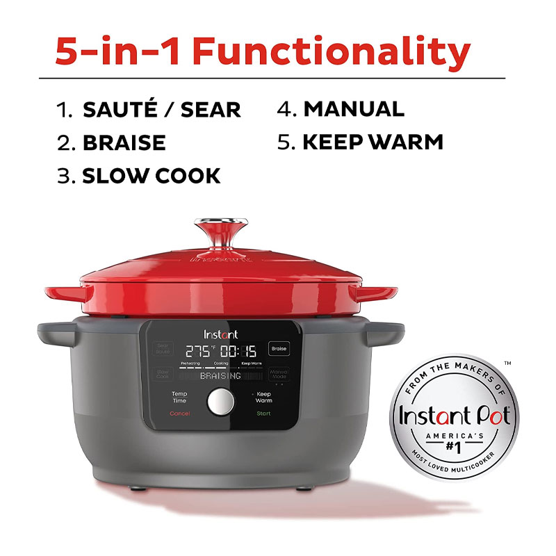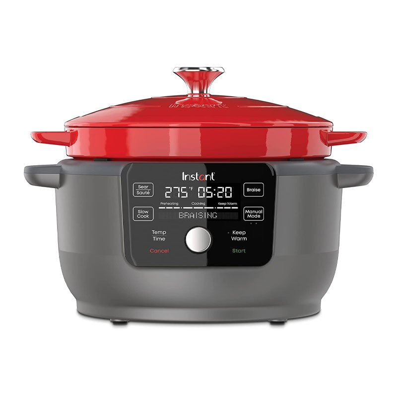 The Precision Dutch Oven gives you precise control for braising, searing/sautéing, and slow cooking, delivering gourmet results for your meals. The heavy-duty cooking pot and lid are made from cast iron, with a durable enamel coating for long life and beauty. The cooking pot can be removed from the cooker base, so you use it on the stovetop or in the oven, and it’s beautiful on the table for serving. Get pro results easily with the Precision Dutch Oven.