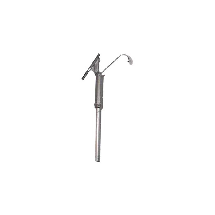 Samson 1243, Drum Pump Lever Action. A larger pump body with greater internal volume. Has Viton seals, useable with alcohols, detergents, solvents, oils and anti-freeze. Long curved removable steel spout.