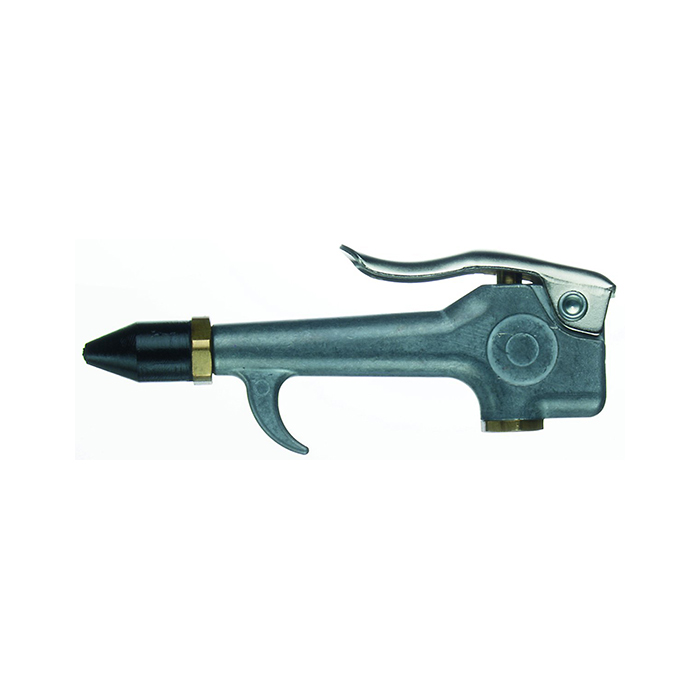 Features a convenient, built-in hang hook, comfortable thumb lever valve control, oil-resistant and a soft replaceable rubber tip that wont mark delicate surfaces. It Provides a leakproof seal against oil passages, fuel lines, etc. wherever air pressure is needed for cleaning. Standard, thumb lever type Blow Gun with rubber tip is ideal for use in home garages, shops, and industrial facilities. Plated steel handle attached to gun body with heavy duty rivets for a firm, positive action and it built with 1/4-18 Female NPT inlet and 1/8-27 Female NPT outlet.