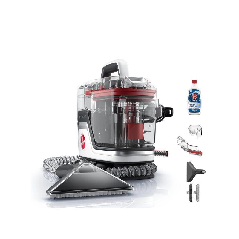 The Hoover CleanSlate Carpet and Upholstery Cleaner combine powerful suction, versatile tools, and the performance of the Oxy formula to permanently remove stains and pet messes. With our 7″ WidePath Tool for large areas like stairs and the TightSpot Tool for crevices and tough-to-reach areas, you’ll have the flexibility you need to clean messes of any size. Quickly remove spills and stains on the go thanks to a light, portable design and a long cord so you can easily move between areas. And with the Hose Rinse tool, your machine stays clean and ready for the next mess.