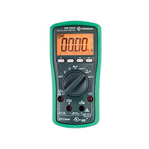 Greenlee DM-200A, Digital Meter 750Vac/1000Vdc uses optional USB / RS-232 interface DMSC-2U for direct-to-PC logging and has backlit LCD with 6,000 count display.