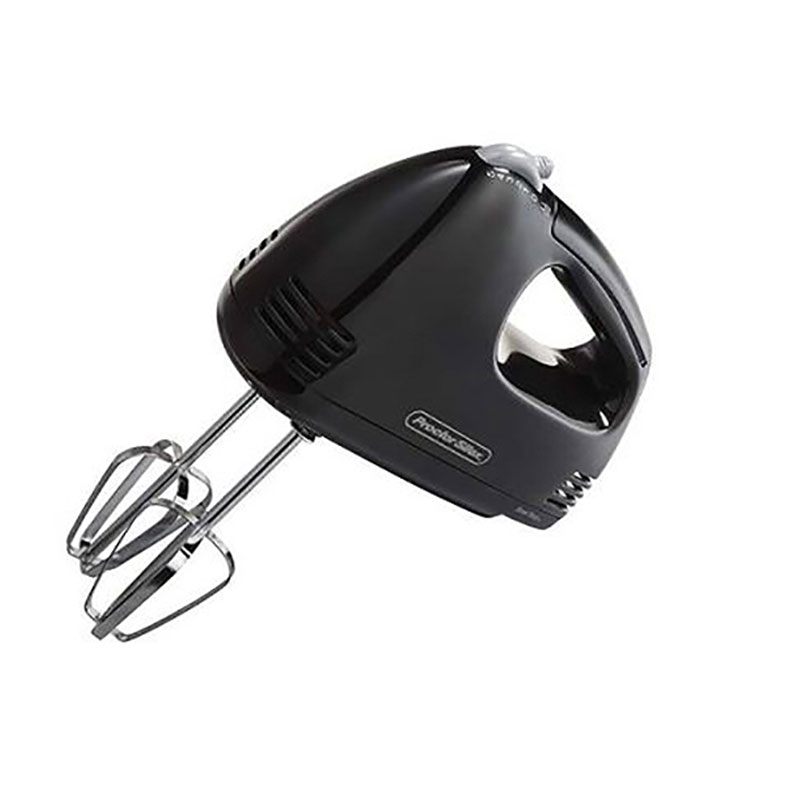 Proctor Silex 5-Speed Easy Mix Hand Mixer Black. Hand Mixers are powerful compact and durable appliances for all of your mixing needs. Proctor Silex Hand Mixers are reliable small appliances for all your baking and cooking needs. These lightweight mixers are designed for power with 5 speeds that are ideal for mixing stirring beating and whipping. Models come equipped with traditional chrome beaters for optimal mixing. Proctor Silex Hand Mixers are compact and convenient with a unique Bowl Rest stabilizing feature and a comfortable handle that provides extra control. Whether you’re mixing ingredients for baking or beating eggs for omelets Proctor Silex hand mixers make preparation easy and save you valuable time in the kitchen. Bowl rest feature. Beater eject. 5 speeds.