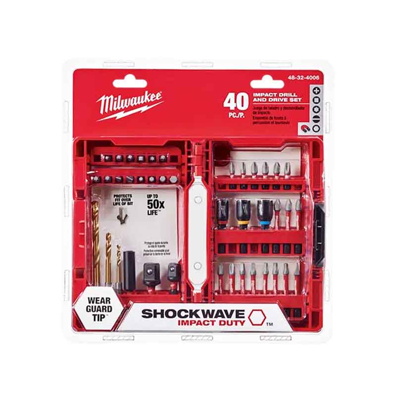 Milwaukee 48-32-4006, SHOCKWAVE Impact Duty Drill & Drive Set – 40 Pieces, feature MILWAUKEE Wear Guard Tip that delivers increased wear resistance which protects the fit over the life of the bit.