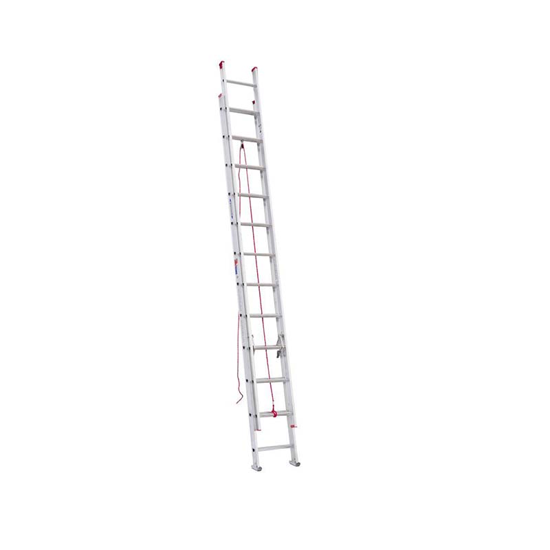 This Louisville 24 feet aluminum extension ladder has a 200 pound load capacity, rated ANSI Type III. This ladder is equipped with D-shape rungs fully serrated for a slip-resistant surface, aluminum unlock, mar-resistant rail end caps, rope and pulley, and slip-resistant rubber feet. The Louisville D-2324-24 aluminum extension ladder meets or exceeds the safety standards set by ANSI, CSA, and OSHA.