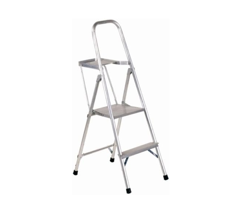 This Louisville 4 foot lightweight platform aluminum step stool has a 200lb load capacity. This platform step stool features a top rail guard, heavy-duty gusset bracing, riveted step construction, slip-resistant rubber feet, and slip-resistant platform. This ladder is ideal for those inside the house jobs.