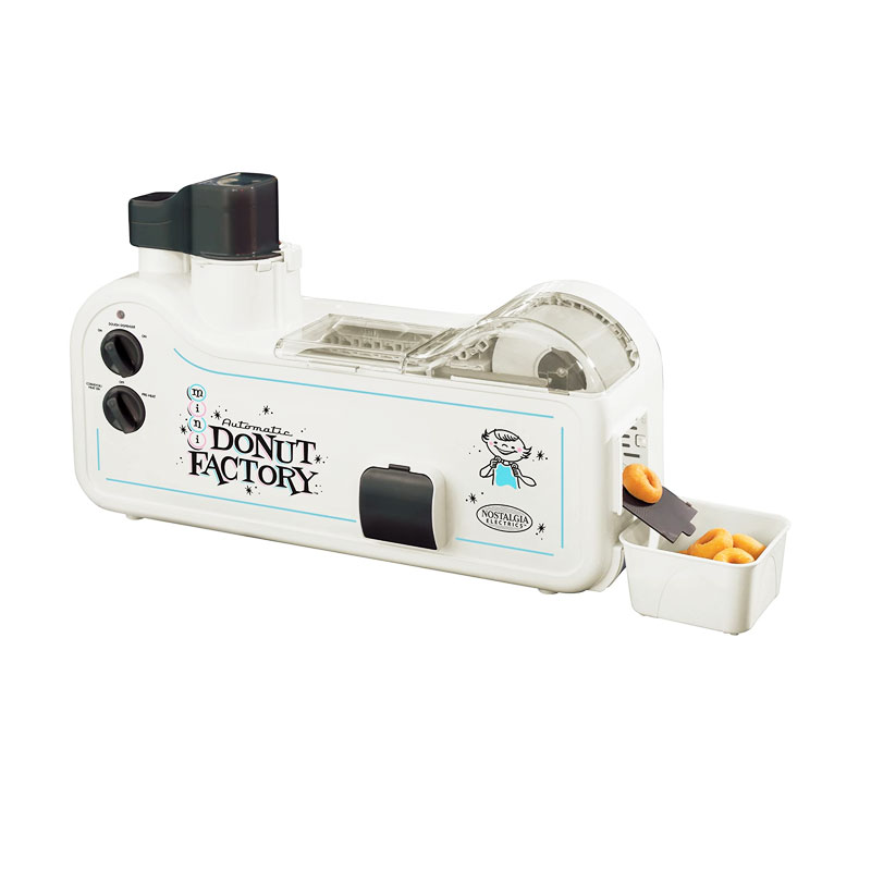 Bring the donut shop into your kitchen! Make hot, fresh, delicious mini donuts in the comfort of your home, with the Nostalgia Mini Donut Factory. Just fill the hopper with donut batter and turn the unit on.