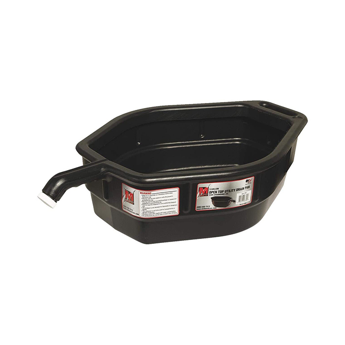 Midwest 6395, Oil Drain Pan – 5 Gallon Capacity. Convenient carry handles and pour spout for easy emptying. The product is manufactured in United States.