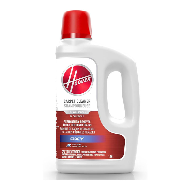 Win against life’s toughest stains with HOOVER® Oxy Carpet Cleaning Formula. This fast-acting, stain-fighting formula attacks and breaks down both old and new stains for easy cleaning. Oxy technology neutralizes pungent odors and leaves your carpets smelling fresh and clean with an ocean breeze scent.