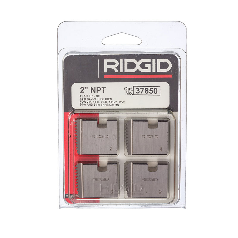 Ridgid 37850, Manual Threader Pipe Dies that are Right-Handed Alloy NPT Pipe Dies with Nominal Pipe Size of 2-Inch for Ratchet Threaders or 3-Way Pipe Threaders.