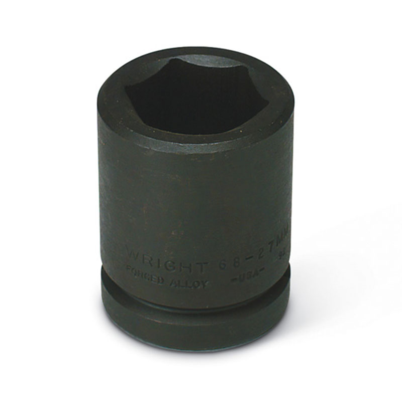 This socket attaches to a socket wrench, ratchet, torque wrench or other turning tool in order to tighten or loosen a fastener such as a nut or bolt by turning it. Enhance your tool collection with the 1 Inch drive 6 point standard impact socket, 2-11/16 Inch. Impact tools save time and handle high torques with less effort and more safety. Wright 6 point sockets use the patented Wright drive design for greater strength and longer life. Wright impact sockets are always black, not only to distinguish them from hand sockets, which are usually plated, but also to avoid the chipping which could occur when a plated socket is subjected to thousands of cycles of very high loads. Each Wright impact socket is designed for its drive size because the drive size limits the torque that may be applied.Length 3 15/32 Inch diameter socket 3 53/64 Inch. Diameter drive 2 3/4 Inch broach depth 1 53/64 Inch.