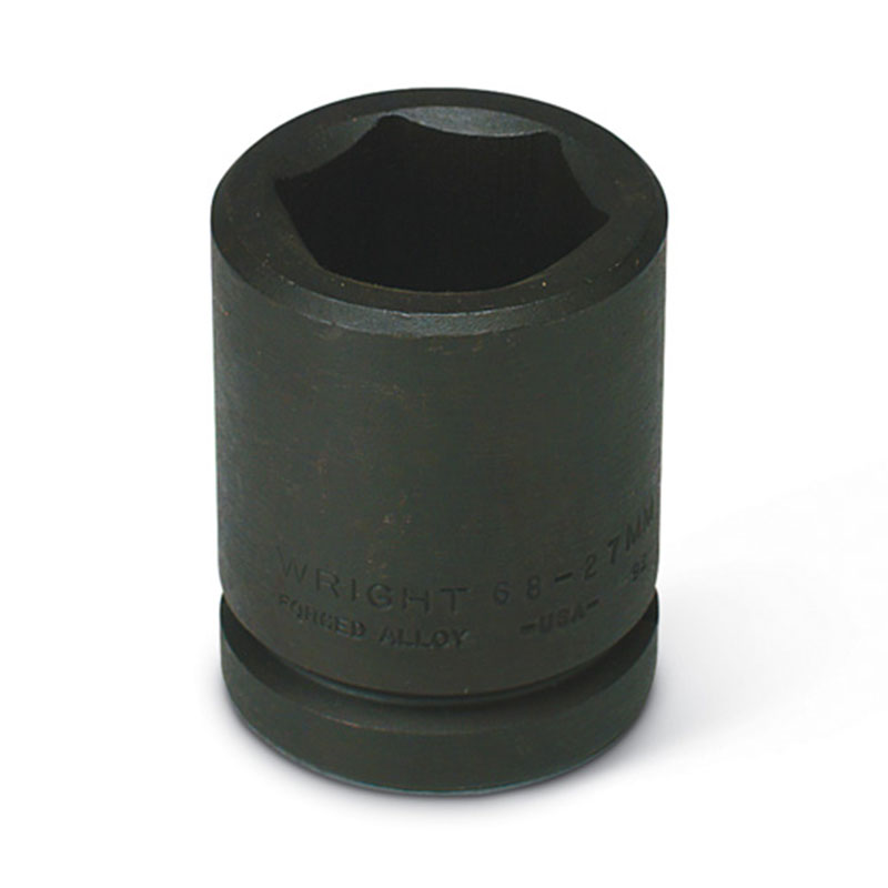 This socket attaches to a socket wrench, ratchet, torque wrench or other turning tool in order to tighten or loosen a fastener such as a nut or bolt by turning it.Wright 6-Point sockets use the patented Wright Drive design for greater strength and longer life. Wright impact tools are stronger and tougher to withstand the repeated high loads produced by impact guns. Wright impact sockets are always black, not only to distinguish them from hand sockets, which are usually plated, but also to avoid the chipping which could occur when a plated socket is subjected to thoughts of cycles of very high loads.Each Wright impact socket is designed for its drive size because the drive size limits the torque that may be applied. This product has an Overall Length of 3-3/4 Inch with an Outside Diameter of2-11/16 Inch.