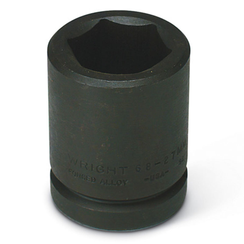 Wright Tool 68-27MM, 3/4 Inch Drive 6 Point Standard Metric Impact Socket, 27mm provides a Chamfered opening that quickly guides fasteners into socket. It provides greater strength and torque, plus better griping power.