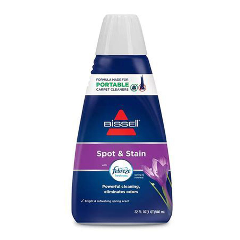 Bissell Spot and Stain with Febreze formula is made for portable carpet cleaners. This powerful formula tackles tough messes that happen on your carpet and upholstery, including coffee, wine and grease. It doesn’t just remove stains, it removes odors, too, and leaves a noticeably fresh Spring Breeze scent.