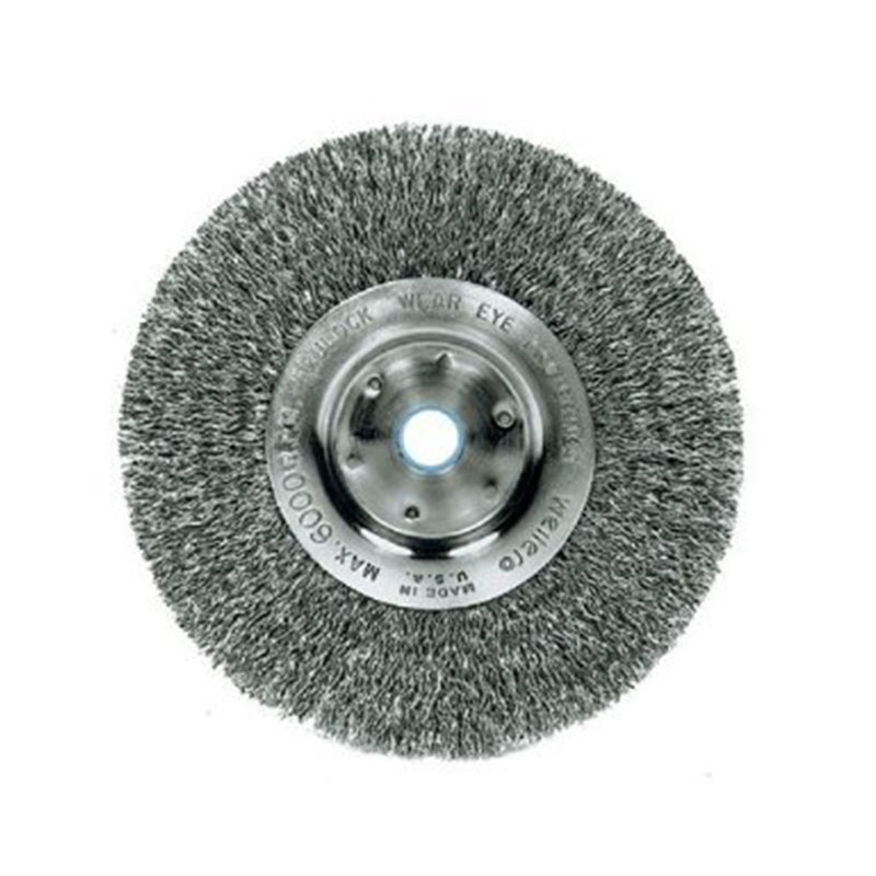 Wire Wheels crimped wire wheels are densely filled with high quality fill materials including heat-treated steel, type 302 stainless steel, brass, or bronze wire. 01075 is ideal for high production applications and it can be mounted in multiples.